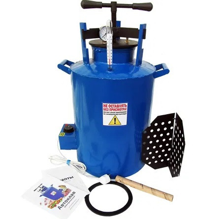 Дана модель автоклава має літраж в 30 л і вміщає в себе 20 півлітрових або 14 літрових банок з консервацією за одне завантаження. Ці харківські автоклави виготовляються з міцної сталі. Температура стерилізації в них становить від 110 до 120 градусів Цельсія. Ця модель дуже безпечна і проста в експлуатації. Купуючи автоклав, він вже повністю готовий до роботи.