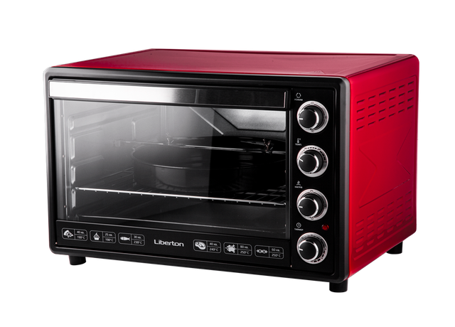 Електрична духовка Liberton LEO-650 Red об'ємом 65 літрів, з грилем і конвекцією підсвічуванням