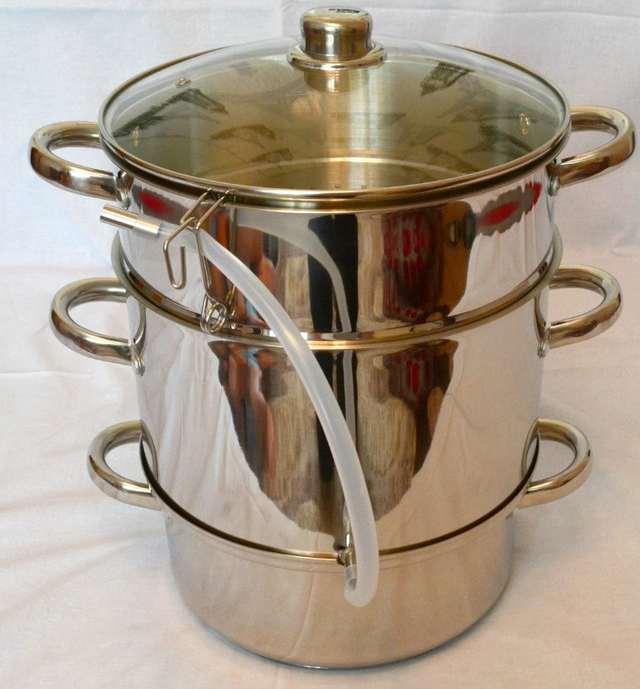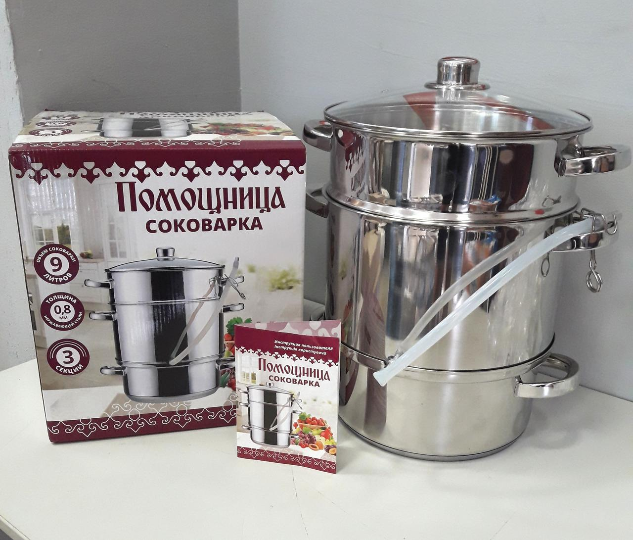 Соковарка з неіржавкої сталі об'ємом 9 л застосовується для отримання соку з ягід, фруктів і овочів у домашніх умовах. Соковарка складається з 3 окремих частин-каструль:
