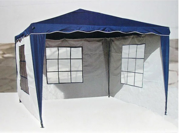 Розмір тенту 3 х 3 м, висота з дахом 2,5 м. Три стінки з віконцями. Високоміцні металеві кутові з'єднання зі сталевого сплаву з порошковим покриттям (захист від вологи: антикорозія).