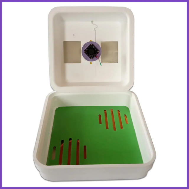 Повітрообмін в інкубаторі забезпечується вентиляційними отворами в кришці та коробі, інтенсивнішим його можна зробити завдяки знімним заглушкам.