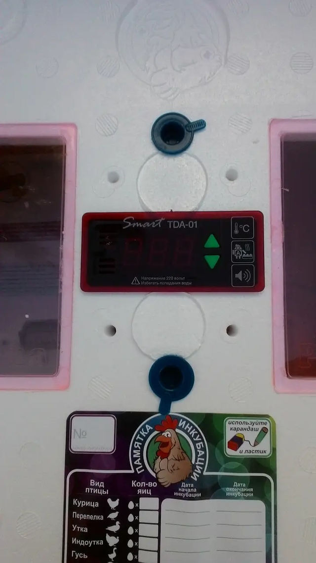 Для правильної роботи інкубатора температура повітря всередині приміщення має бути в межах від +18 до +35 градусів. Похибка вимірювання температури становить 0,1 градуса.