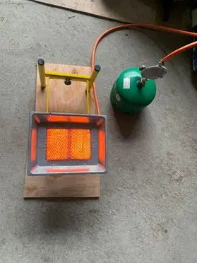 — газовий пальник закріпити на підставці та приєднати до газового балона, підпалити полум'я сіркою або запальничкою. Керамічна панель почне випромінювати тепло завдяки інфрачервоному випромінюванню, відкритому вогню немає.